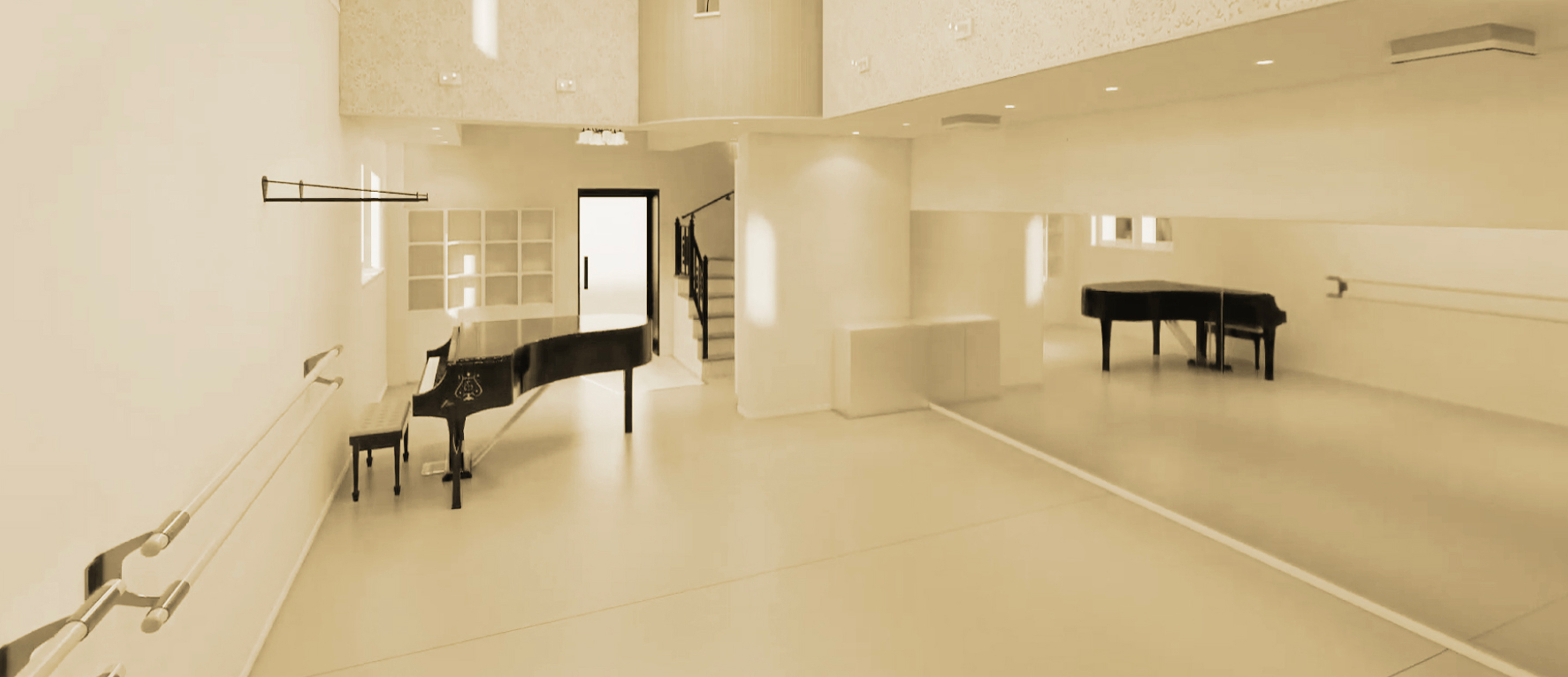 しかし、当スタジオは充分な天井の高さを持ち、中央部には吹き抜けを設けているため、開放感の中で伸び伸びと踊ることができます。